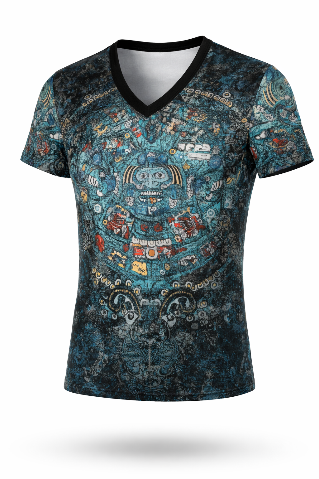 La Camiseta Kinich está diseñada para hombres que quieren destacar sin decir una palabra. Su gráfico tribal inspirado en arte MAYA combina líneas geométricas, símbolos ancestrales y una paleta de colores turqueza que crea una prenda con presencia, carácter y mucha actitud.