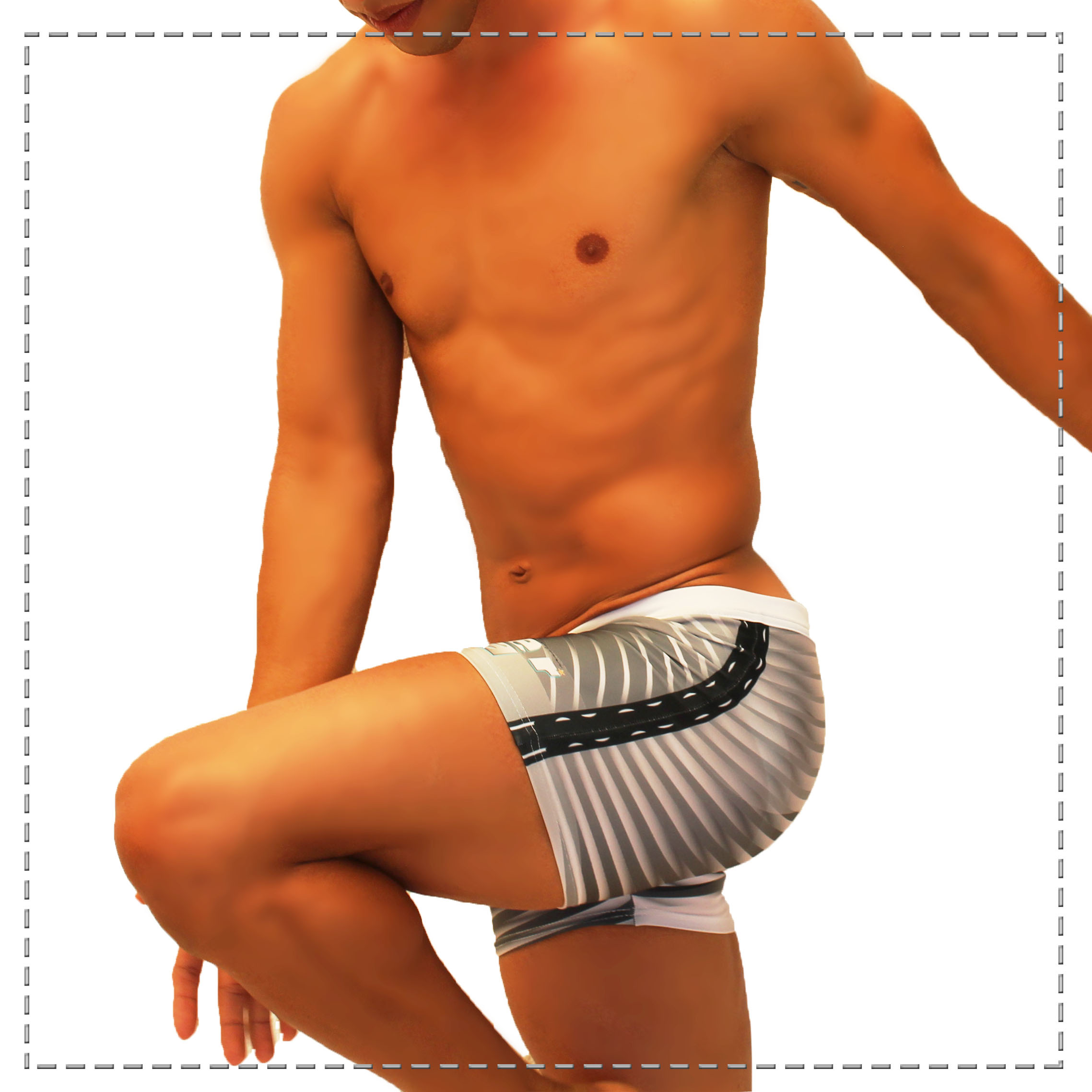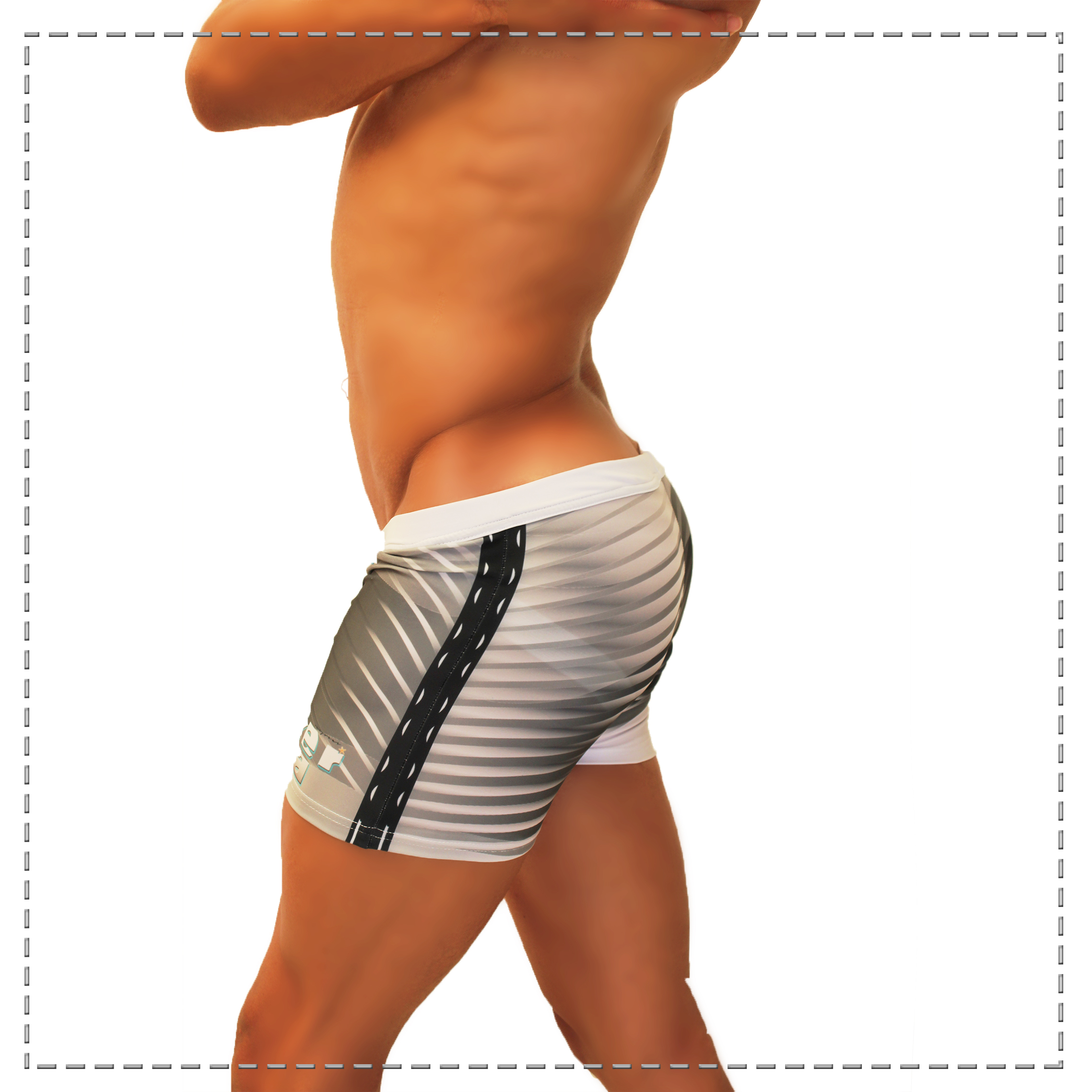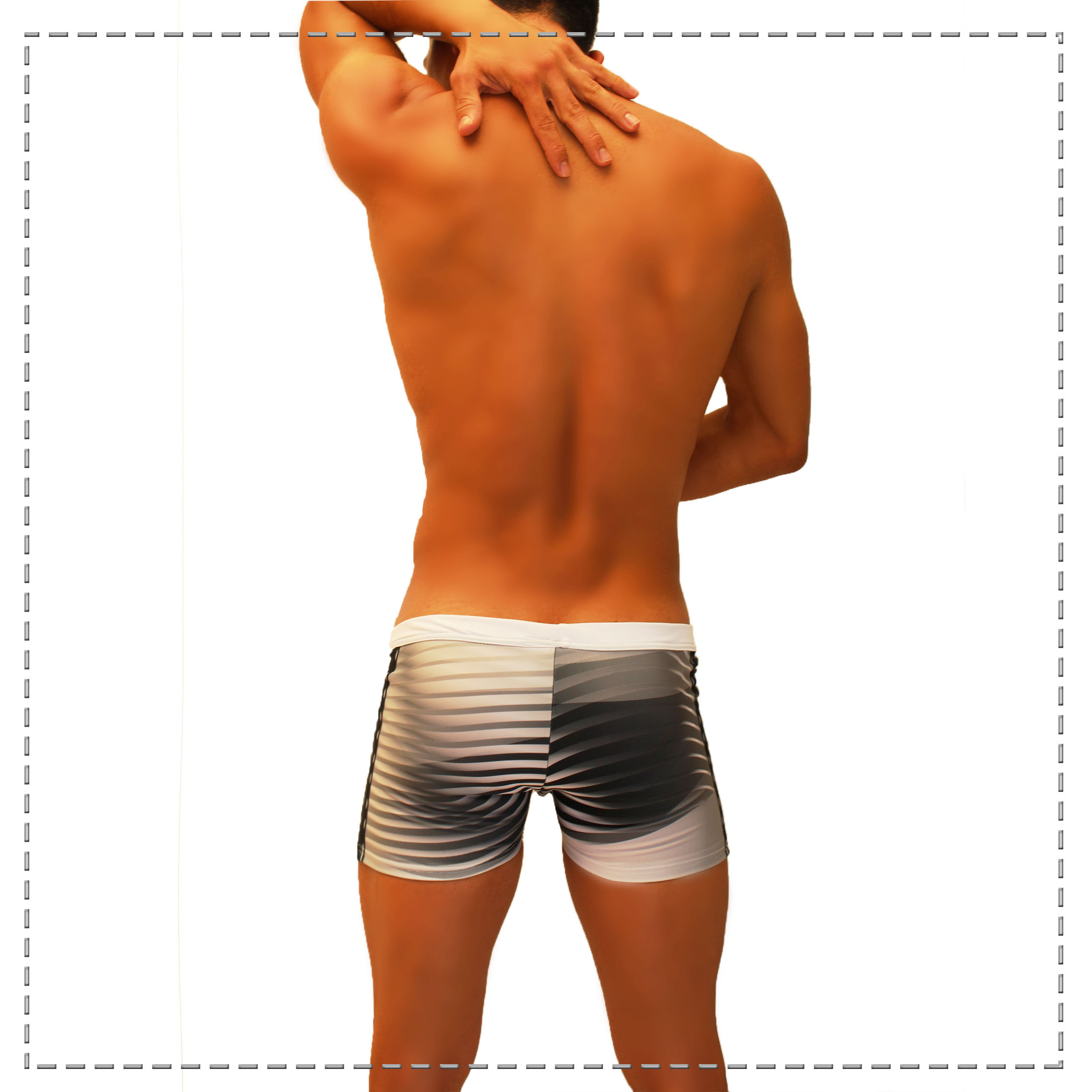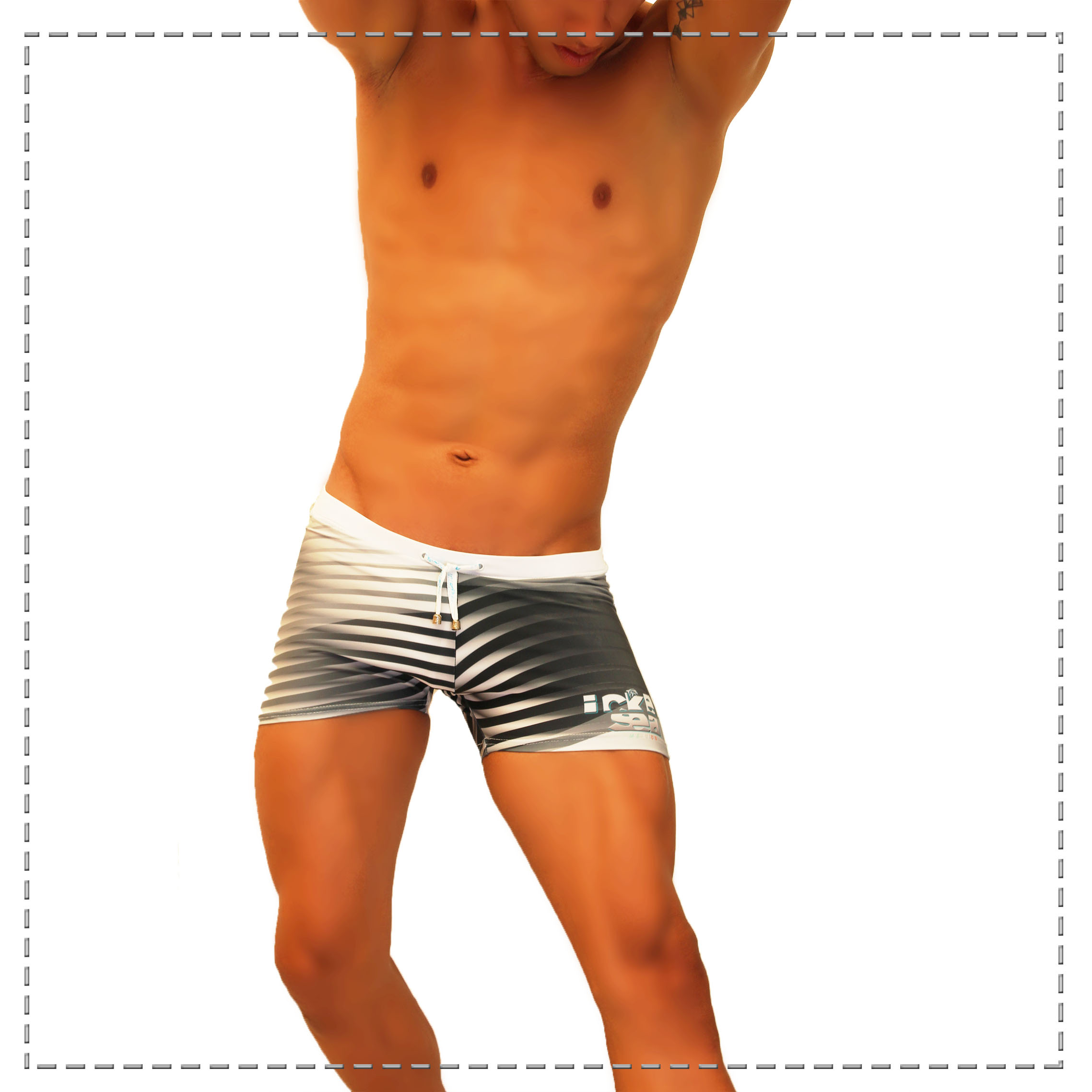 Sexy Bañador confeccionado con tela importada , compuesto de 85% Nylon y 15% Elastano lo hacen ser una prenda perfecta para esa ocasión en la playa o alberca con tu pareja , esta prenda corte short con jockstrap integrado en estampado líneas metálicas