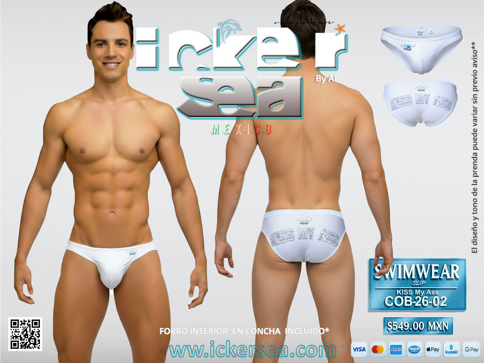 Bañador premium para hombre – FUN SLIP KISS MY ASS by AI, ICKER SEA WEAR