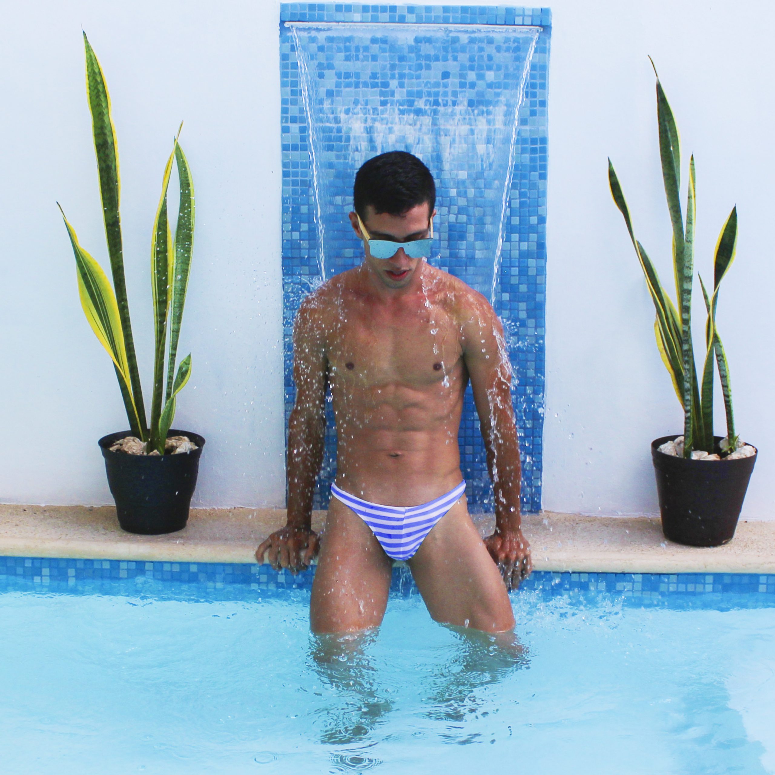 Sexy Bañador confeccionado con tela importada , compuesto de 85% Nylon y 15% Elastano lo hacen ser una prenda perfecta para esa ocasión en la playa o alberca con tu pareja ,corte tanga a rayas